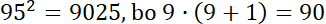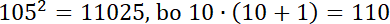 1. Janek zauważył następującą prawidłowość: kwadrat każdej liczby zakończonej cyfrą 5 jest zakończony cyframi 25. By dostać początkowe cyfry, obcinamy piątkę od końca liczby którą chcemy podnieść do kwadratu i mnożymy tak powstałą liczbę przez liczbę o 1 od niej większą.