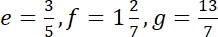 Odcinek między 0 a 1 podzielono na 5 równych części, a odcinek między 1 a 2 – na 7 równych części.