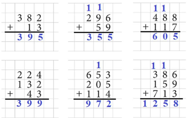 Wykonaj dodawanie sposobem pisemnym. Za każdym razem, kiedy otrzymasz wynik, skreślaj go w ramce.
