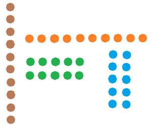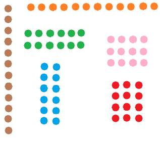 Kropki musisz umieścić tak, aby po wymnożeniu liczby kropek w rzędzie przez liczbę kropek w kolumnie otrzymać całkowitą liczbę kropek.