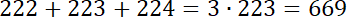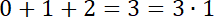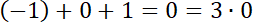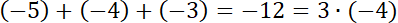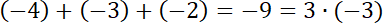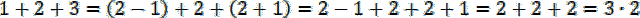 Suma trzech kolejnych liczb całkowitych jest równa trzykrotności środkowego składnika. Tym sposobem można łatwo policzyć, że: