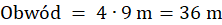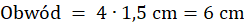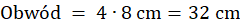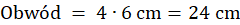 | Obwód kwadratu | 32 cm | 6 cm | 40 dm | 44 m | 24 cm | 36 m |
