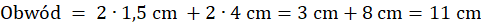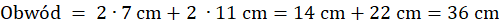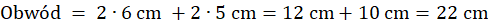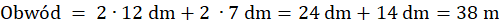 | Obwód prostokąta | 22 cm | 11 cm | 40 m | 76 cm | 36 cm | 38 dm |