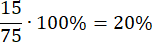 Podziel 15 przez 75, a otrzymany ułamek zamień na procenty: