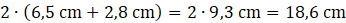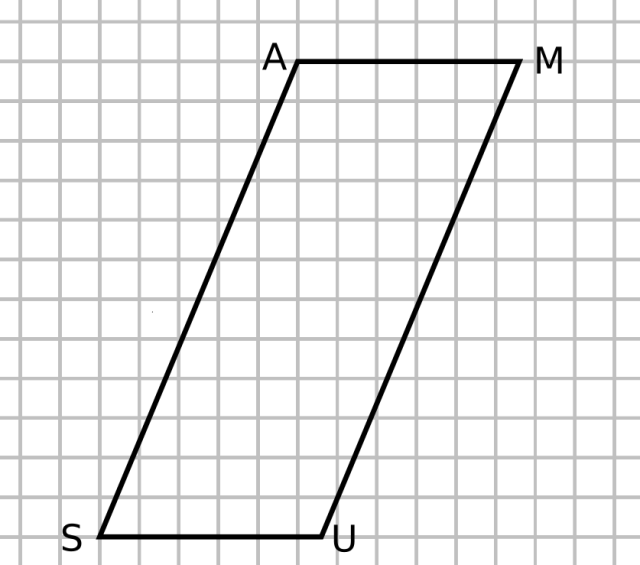 Kratka na rysunku ma bok długości . Kratka na rysunku ma bok długości . Narysuj dwa odcinki – o długości 2,8 cm i , o długości 6,5 cm. Następnie przez punkt poprowadź prostą równoległą do odcinka . Na prostej zaznacz punkt odległy odo 2,5 cm, zaznaczony punkt to wierzchołek . Tak skonstruowany czworokąt jest równoległobokiem z zadania. Skorzystaj z tego, że obwód równoległoboku o bokach wynosi .