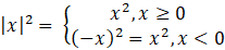 Funkcja wartości bezwzględnej od zmiennej x przyjmuje wartość równe x wtedy, gdy x jest liczbą nieujemną i -x wtedy, gdy x jest liczbą ujemną. Po podniesieniu wartości funkcji do kwadratu znak przestaje mieć znaczenie, ponieważ a2 = (-a2) – iloczyn dwóch liczb ujemnych jest dodatni. W związku z tym funkcja |x|2 będzie przyjmować wartości x2 niezależnie od wartości x.
