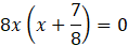 Aby przekształcić równanie do postaci ax2 + bx + c lewą stronę rozwiń za pomocą wzoru skróconego mnożenia, a prawą przez wymnożenie wyrażeń w nawiasach. Następnie zredukuj równanie. Wyłącz czynnik 8x przed nawias. Iloczyn dwóch wyrażeń jest zerem, gdy co najmniej jedno z nich jest równe 0.