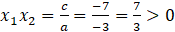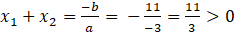 Miejsca zerowe funkcji y = -3x2 + 11x – 7 są liczbami dodatnimi.