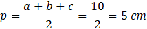 Pole oblicz ze wzoru wykorzystującego połowę obwodu trójkąta i długość promienia okręgu wpisanego w ten trójkąt.