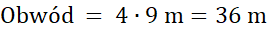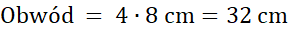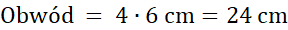 | Obwód kwadratu | 32 cm | 6 cm | 40 dm | 44 m | 24 cm | 36 m |