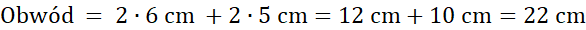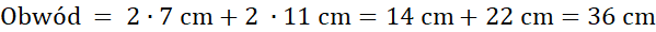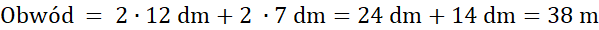 | Obwód prostokąta | 22 cm | 11 cm | 40 m | 76 cm | 36 cm | 38 dm |