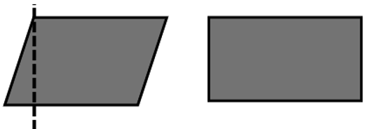 Zauważ, że po odcięciu trójkąta (jak na rysunku) otrzymasz prostokąt, którego pole to iloczyn długości jego boków. W przypadku równoległoboku będzie to długość podstawy pomnożona przez długość wysokości.