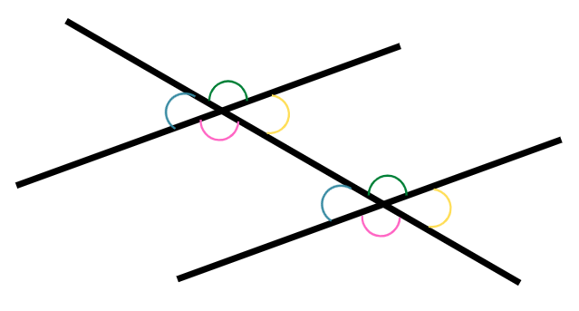 Zaznacz na rysunku jeszcze 3 pary kątów odpowiadających.