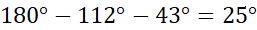 Trójkąt 2 od lewej do prawej: 43°, 112°, 25°