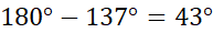 W trzecim trójkącie 2 kąty między bokami a i a są równe i są kątem przyległym do 137 stopni: