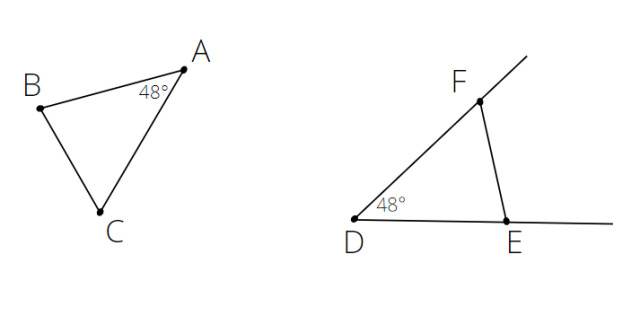 Na ramionach kąta o wierzchołku D narysuj punkty E i F, by trójkąt DEF był identyczny z trójkątem ABC.