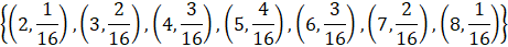 X przyjmuje wartości: {2, 3, 4, 5, 6, 7, 8}
