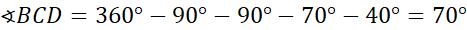 Na koniec oblicz miarę kąta BCD korzystając z sumy miar kątów w czworokącie.