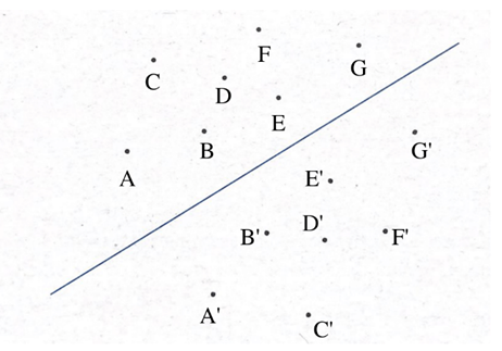 W tym zadaniu znajdź punkty symetryczne względem prostej i oznacz je literami.
