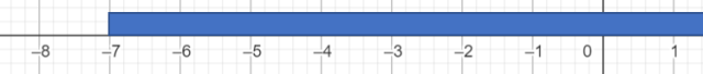 Zaznacz zbiór liczb większych lub równych -7 na osi. Zapisz jako przedział, pamiętając o nieskończoności i domknięciu przedziału.
