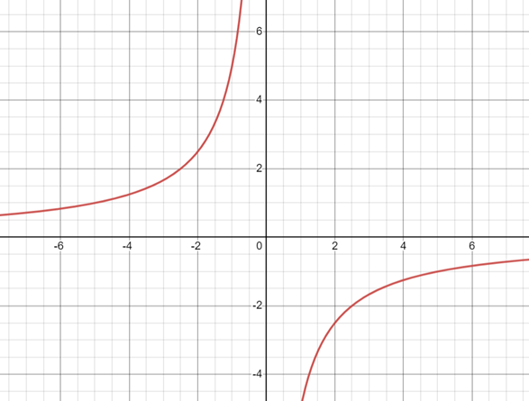 Z rysunku widać, że ramiona hiperboli zbiegają do 0, ale nigdy nie osiągają tej wartości, więc zbiór wartości to R – {0};