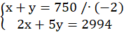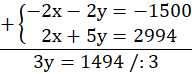 Następnie równanie rozwiąż metodą przeciwnych współczynników (w tym celu pomnóż pierwsze równanie przez -2 i dodaj do siebie równia). Po wyliczeniu y dane podstaw do pierwszego równania i wylicz x.