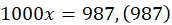 W tym zadaniu musisz zmienić ułamek okresowy 0,(987) na zwykły.