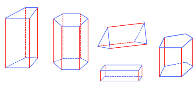 Krawędzie podstaw to krawędzie takich powierzchni graniastosłupa, które są jednakowymi wielokątami położonymi równolegle do siebie