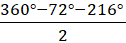 Kąt α można obliczyć, znając miary dwóch pozostałych kątów. Kąt γ razem z kątem 144° tworzą kąt pełny. Kąt β można obliczyć analogicznie do kąta α, znając miary dwóch pozostałych kątów.