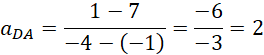 Oblicz współczynnik kierunkowy prostej DA ze wzoru: