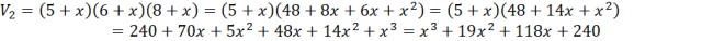 W tym zadaniu musisz stworzyć wzór wielomianu zmiennej x, który będzie opisywał objętość prostopadłościanu, którego krawędzie o długości 5 cm, 6 cm i 8 cm zwiększono o x cm, a sama objętość wzrosła o 320 cm³.