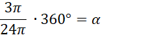 Podstaw do wzoru podane w treści dane: długość promienia okręgu oraz długość łuku, a następnie oblicz.