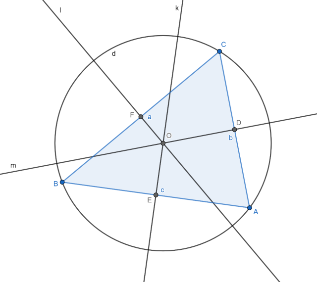 Więc wszystkie symetralne boków trójkąta przecinają się w jednym punkcie.