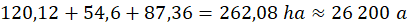 Oblicz jaką powierzchnie zajmują każde z drzew.