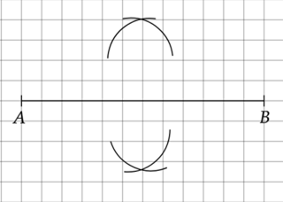 Narysuj prostą przechodzącą przez przecięcia tych łuków. Zauważ, że dzieli ona odcinek AB na dwie równe części.