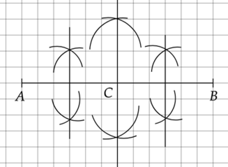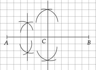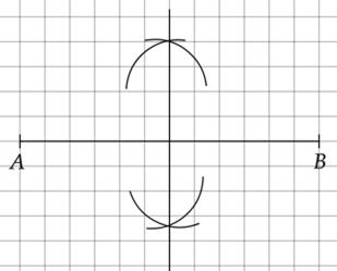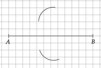 Nie zmieniając rozmiaru cyrkla, wbij nóżkę w punkt A i ponownie zakreśl łuki po obu stronach odcinka.