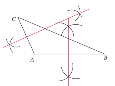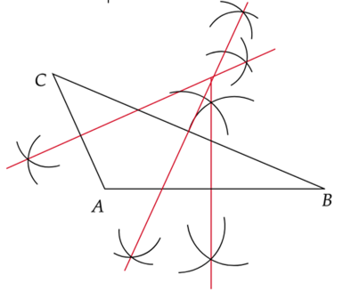 Pozostało wyznaczyć w ten sam sposób symetralną odcinka BC.