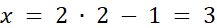 Wypisz wszystkie elementy zbioru {x: x = 2n – 1 i n ∈ N i n <3}.