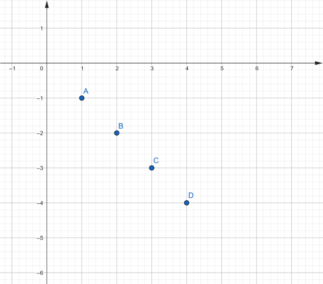 Dziedziną funkcji f jest zbiór X = {1, 2, 3, 4}. Funkcja ta przyporządkowuje każdej liczbie, liczbę do niej przeciwną. Funkcje f przedstaw za pomocą wykresu.