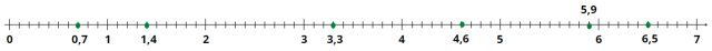 Podziałka na osi liczbowej wynosi 0,1. Przesuwaj się na osi w prawo tak, aby dojść do liczby, którą musisz zaznaczyć.