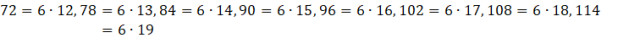 W tym zadaniu musisz wypisać liczby od 70 do 115, które dzielą się przez 6.