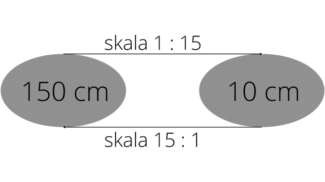 Aby dowiedzieć się, jaką liczbę wpisać skalę, musisz większy odcinek podzielić przez mniejszy i dostaniesz informacje, ile razy zmniejszany lub zwiększany jest dany obiekt. Skala w zapisie 1 : x zmniejsza, a skala x : 1 zwiększa.
