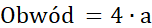 Obwód kwadratu o boku a jest dany wzorem: