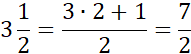 Żeby włączyć całości do ułamka, należy pomnożyć liczbę całości przez mianownik i dodać do licznika: