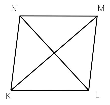 Wyznacz środek odcinka KM i od niego wyznacz linie prostopadłe do przekątnej o długości 2 cm (połowa długości przekątnej). W ten sposób otrzymasz punkty L i N.