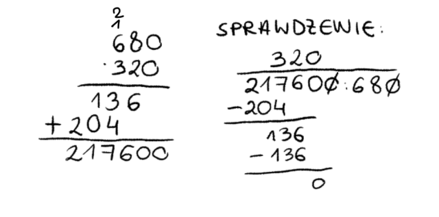 W pierwszym kroku musisz obliczyć iloczyn liczby, zapisanej nad drugą liczbą, z liczbą jedności liczby poniżej. Zapisz wynik pod kreską. Następnie pomnóż liczbę zapisaną nad druga liczbą, przez liczbę dziesiątek i wynik zapisz pod poprzednim wynikiem, jednak tak, aby liczba jedności drugiego wyniku pokrywała się z liczbą dziesiątek drugiego. Powtórz te czynności odpowiednią ilość razy, a na końcu wykonaj dodawanie, którego wynik będzie wynikiem mnożenia.
