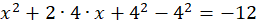 Zauważ, że 2 i -2 podniesione do kwadratu to 4: