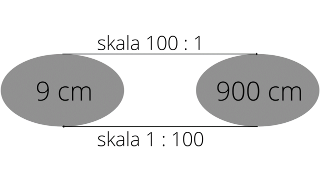 Aby dowiedzieć się, jaką liczbę wpisać skalę, musisz większy odcinek podzielić przez mniejszy i dostaniesz informacje, ile razy zmniejszany lub zwiększany jest dany obiekt. Skala w zapisie 1 : x zmniejsza, a skala x : 1 zwiększa.