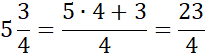 Żeby włączyć całości do ułamka, należy pomnożyć liczbę całości przez mianownik i dodać do licznika: