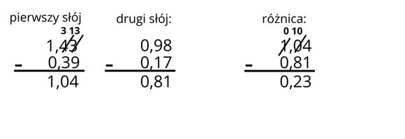 W pierwszym słoju jest o 0,23 kg kompotu więcej.